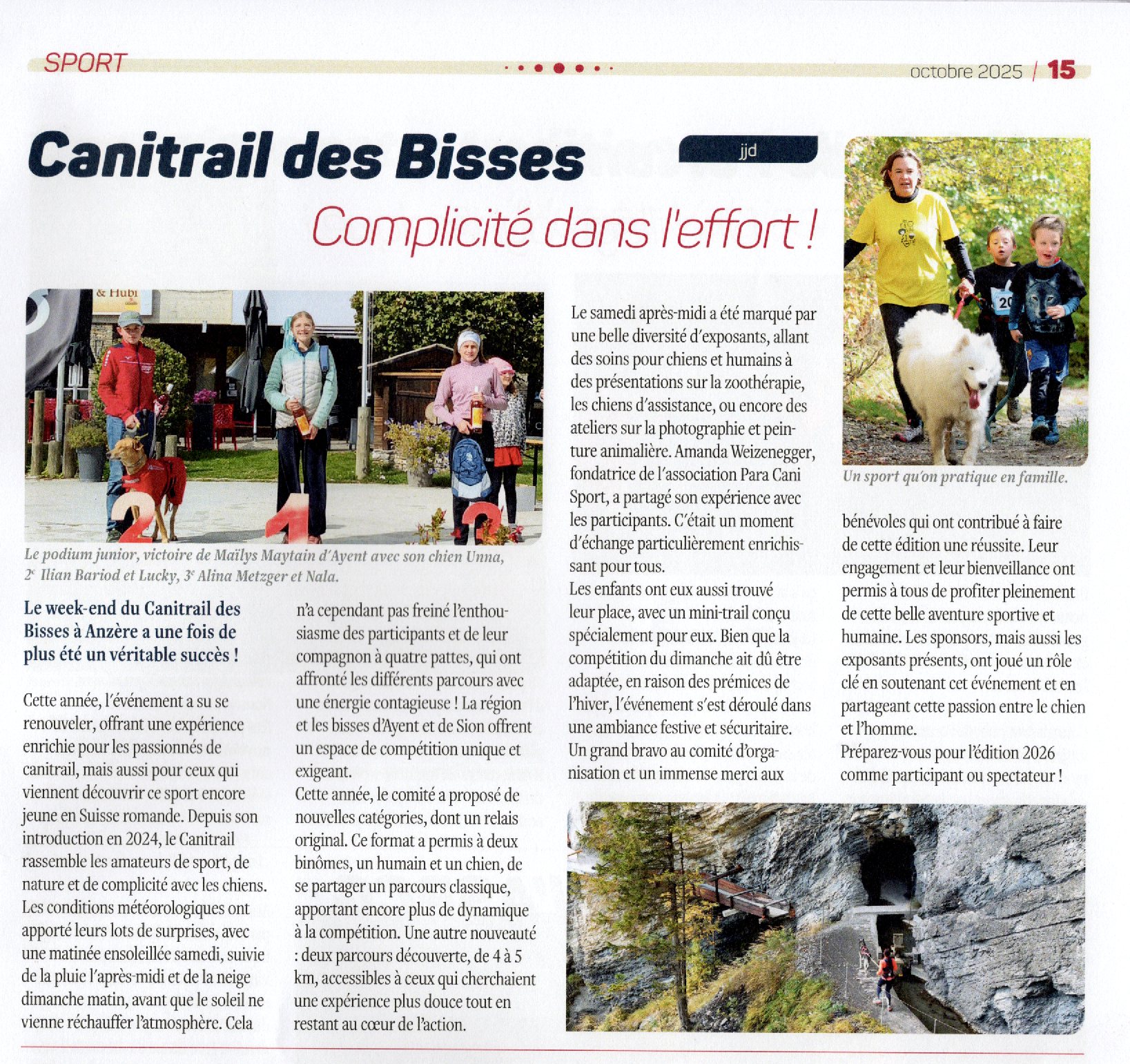Un grand MERCI à Jean-Jacques Dussex pour ce magnifique article sur le canitrail publié dans le magazine régional l’Agache